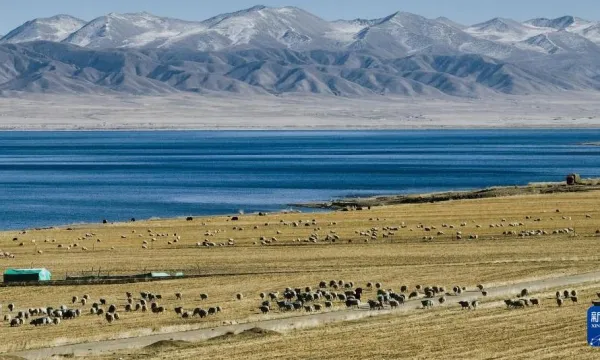 • 航拍冬日青海湖:湖水湛藍 萬物靜謐